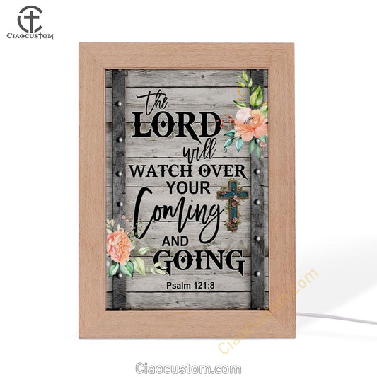 The Lord Will Watch Over Your Coming And Going Psalm 1218 Frame Lamp Prints - Bible Verse Wooden Lamp - Scripture Night Light