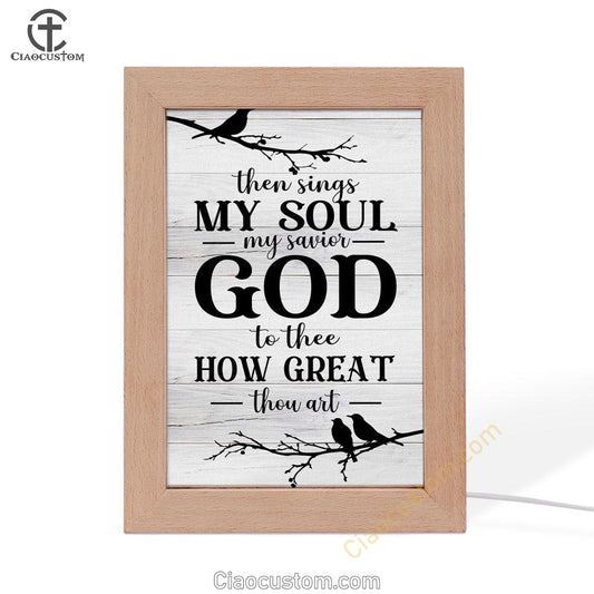 Then Sings My Soul My Savior God To Thee Bird Frame Lamp Prints - Bible Verse Wooden Lamp - Scripture Night Light