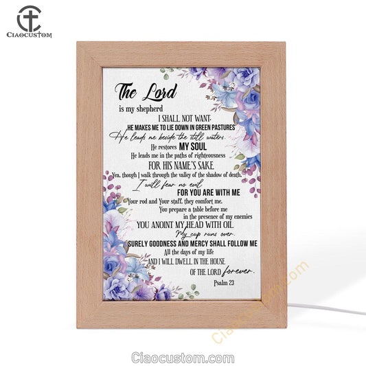 The Lord Is My Shepherd Psalm 23 Frame Lamp Prints - Bible Verse Wooden Lamp - Scripture Night Light