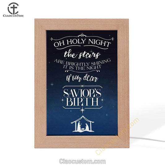 Oh Holy Night The Stars Are Brightly Shining Frame Lamp Prints - Bible Verse Wooden Lamp - Scripture Night Light