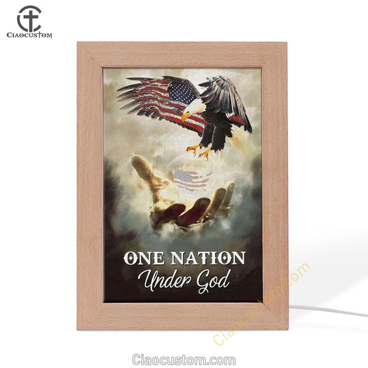 One Nation Under God Frame Lamp Prints - Bible Verse Wooden Lamp - Scripture Night Light