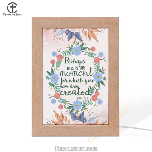Perhaps This Is The Moment For Which You Were Created Esther 414 Frame Lamp Prints - Bible Verse Wooden Lamp - Scripture Night Light