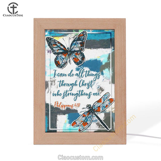 Philippians 413 I Can Do All Things Through Christ Butterfly Frame Lamp Prints - Bible Verse Wooden Lamp - Scripture Night Light