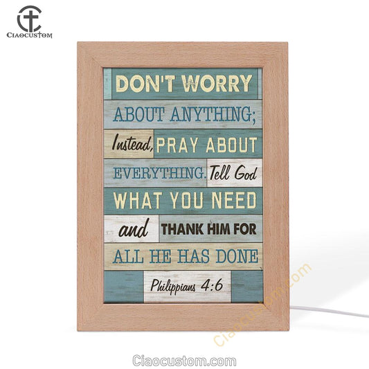 Philippians 46 Don't Worry About Anything Frame Lamp Prints - Bible Verse Wooden Lamp - Scripture Night Light