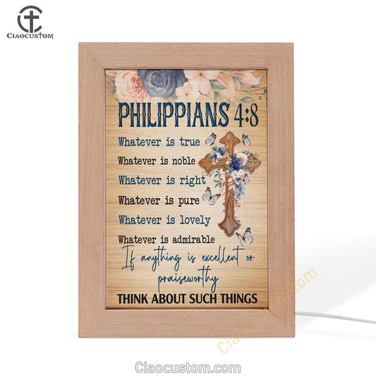 Philippians 48 Whatever Is True Floral Cross Frame Lamp Prints - Bible Verse Wooden Lamp - Scripture Night Light