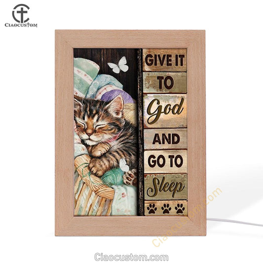 Little Cat Drawing Give It To God And Go To Sleep Frame Lamp