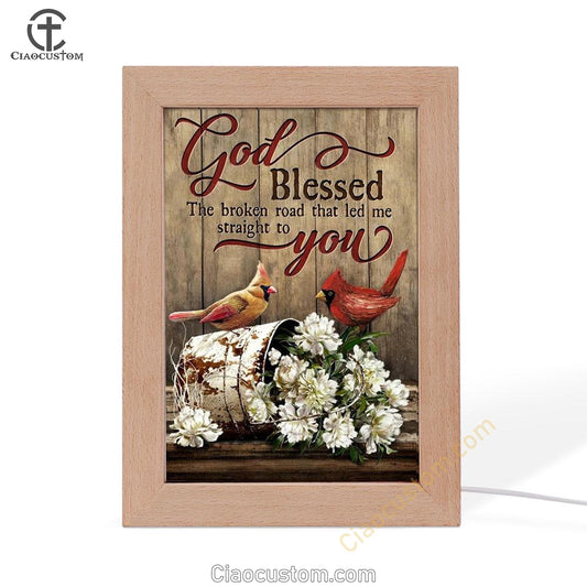 Lovely Cardinal Painting, Gorgeous Peony, God Blessed The Broken Road Frame Lamp
