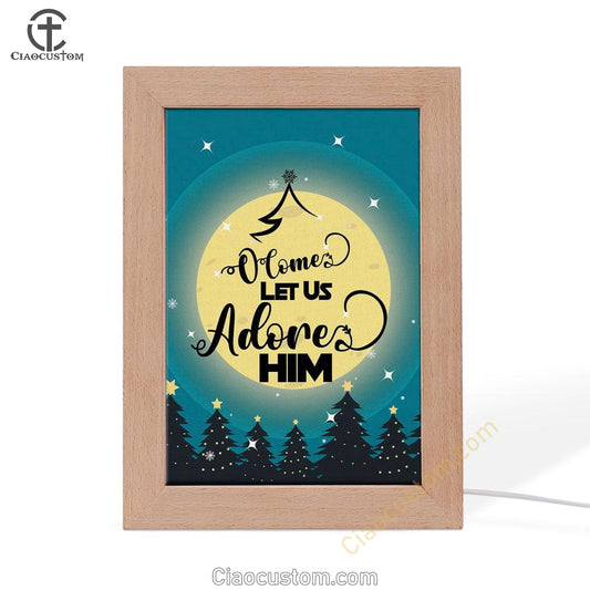 O Come Let Us Adore Him Christmas Tree Frame Lamp Prints - Bible Verse Wooden Lamp - Scripture Night Light