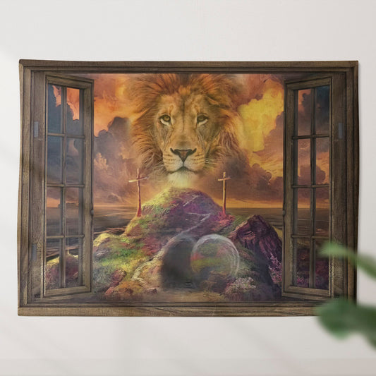 Lion Of Judah Art Tapestry - He Is Risen Tapestry - Christian Tapestry - Religious Tapestry Wall Hanging - Tapestry Wall Hanging - Ciaocustom