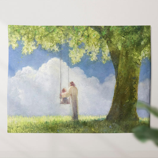 Jesus Christ Carrying A Young Girl Tapestry - With All Thy Heart - Jesus Wall Tapestry - Christian Wall Tapestry - Religious Tapestry - Ciaocustom