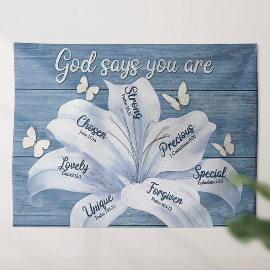 White Lily God Says You Are Tapestry - Christian Tapestry - Jesus Wall Tapestry - Religious Tapestry Wall Hangings - Bible Tapestry - Ciaocustom