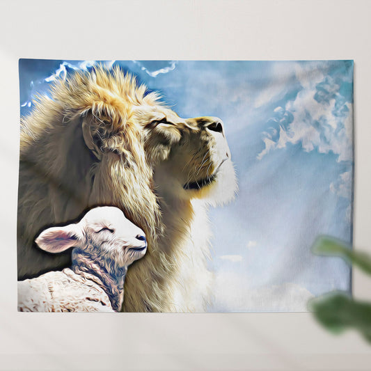 Lion and God - Christian Tapestry Wall Hangings - Christian Wall Art - Jesus Christ Tapestry Wall Art - Ciaocustom