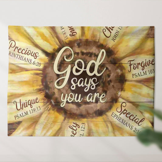God Says You Are - Sunflower - Tapestry Wall Hanging - Christian Wall Art - Tapestries - Ciaocustom