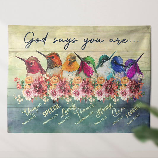 God Says You Are - Hummingbirds - Tapestry Wall Hanging - Christian Wall Art - Tapestries - Ciaocustom