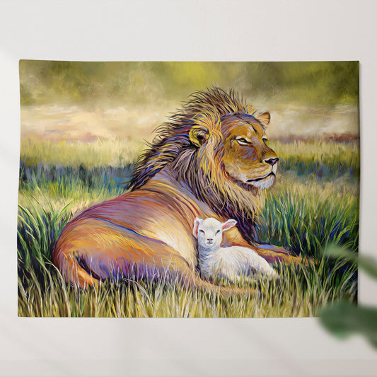 Lion And Lamb - Religious Wall Decor - Christian Wall Tapestry - God Tapestry - Ciaocustom