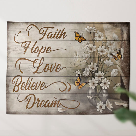 Faith Hope Love Believe Dream Tapestry - Butterfly And Flowers Tapestry - Bible Tapestry - Christian Wall Tapestry - Religious Tapestry - Ciaocustom