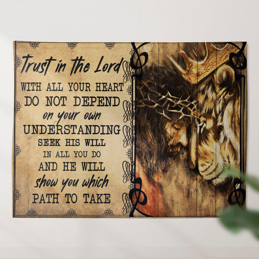 Trust In The Lord - Lion And Jesus Tapestry - God Tapestry - Tapestry Wall Hanging - Christian Wall Tapestry - Religious Tapestry - Ciaocustom