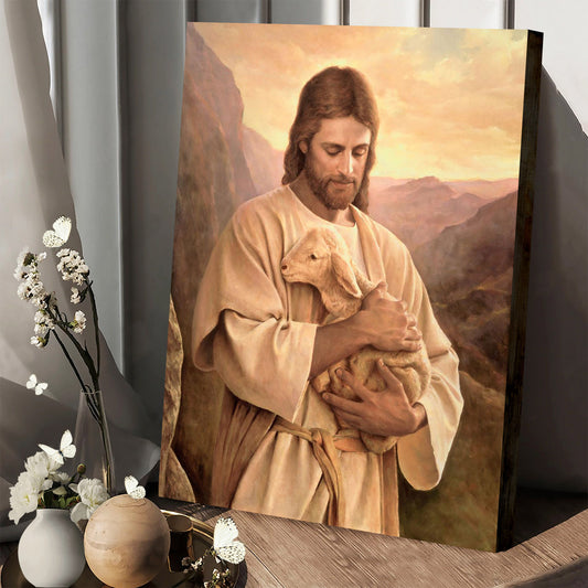 Jesus And The Lamb Picture - Lost Lamb Portrait Canvas Wall Art - Christian Wall Decor