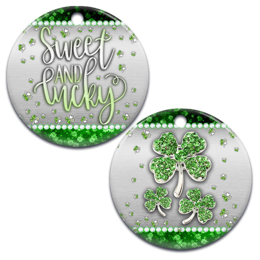St Patricks Day Jewelry Clover Sweet And Lucky Ceramic Circle Ornament - Decorative Ornament - Christmas Ornament