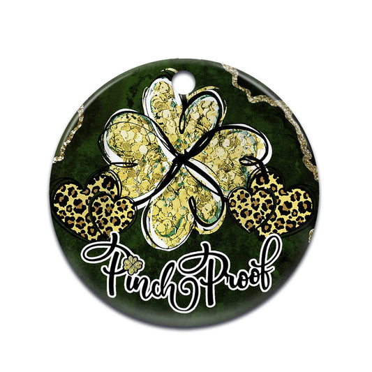 St Patricks Day Marble Clover Pinch Proof Ceramic Circle Ornament - Decorative Ornament - Christmas Ornament