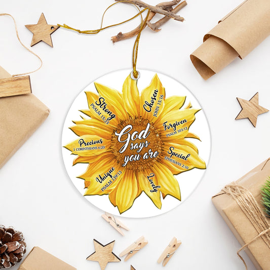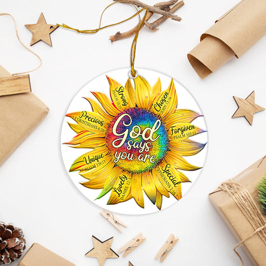 Sunflower God Says Ceramic Circle Ornament - Decorative Ornament - Christmas Ornament