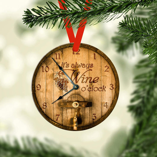 Wine Wooden Style It Is Always Wine Oclock Ceramic Circle Ornament - Decorative Ornament - Christmas Ornament