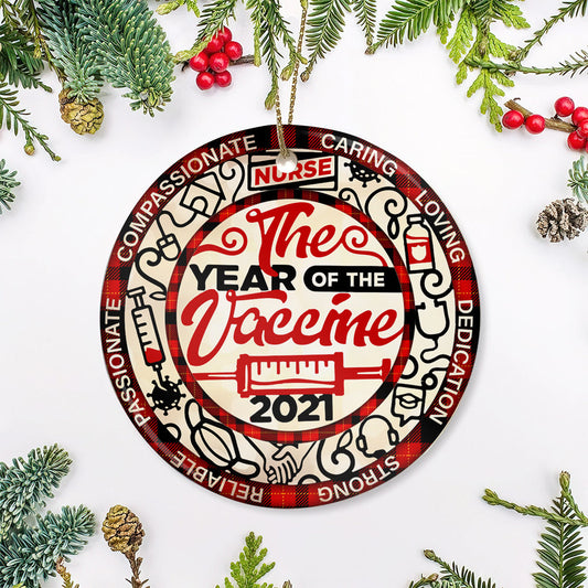 Nurse The Year Of Vaccine Ceramic Circle Ornament - Decorative Ornament - Christmas Ornament