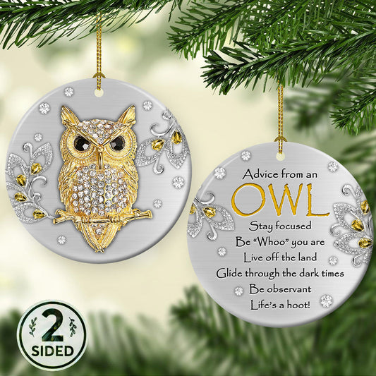 Owl Advice Ceramic Circle Ornament - Decorative Ornament - Christmas Ornament