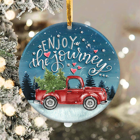 Red Truck Ceramic Circle Ornament - Decorative Ornament - Christmas Ornament