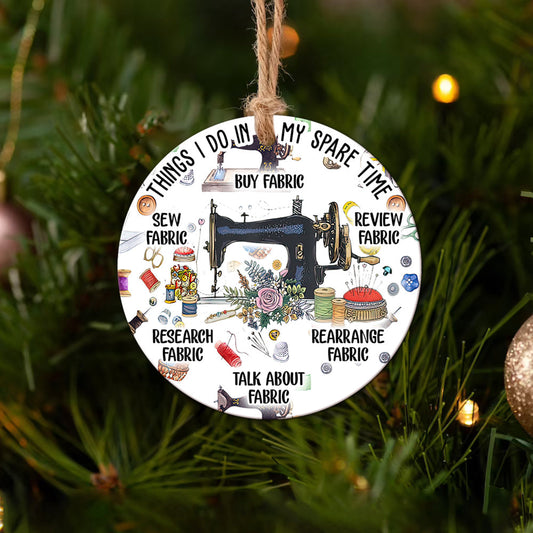 Sewing In My Spare Time Ceramic Circle Ornament - Decorative Ornament - Christmas Ornament