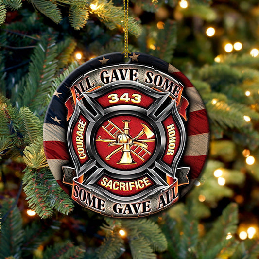Some Gave All Firefighter Ceramic Circle Ornament - Decorative Ornament - Christmas Ornament