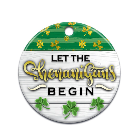 St Patricks Day Glitter Clover Let The Shenanigans Begin Ceramic Circle Ornament - Decorative Ornament - Christmas Ornament