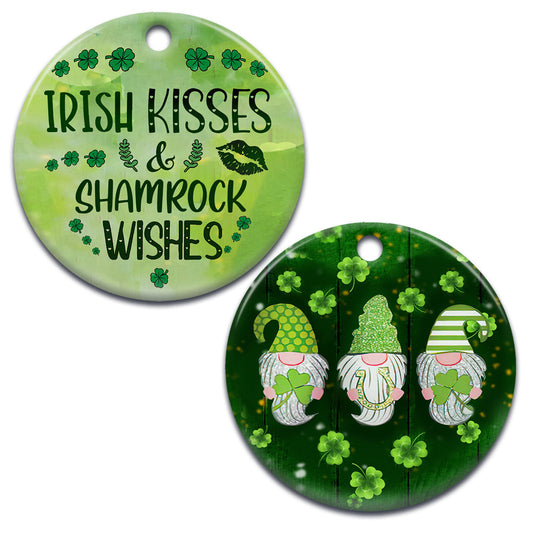 St Patricks Day Gnome Irish Kisses And Shamrock Wishes Ceramic Circle Ornament - Decorative Ornament - Christmas Ornament