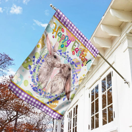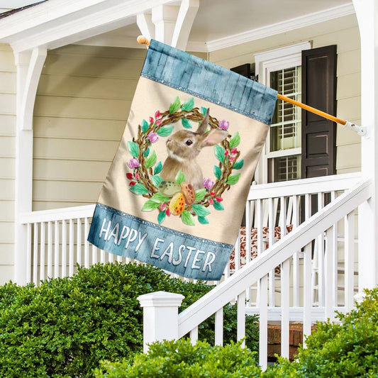Bunny Happy Easter Flag - Easter House Flags - Christian Easter Garden Flags