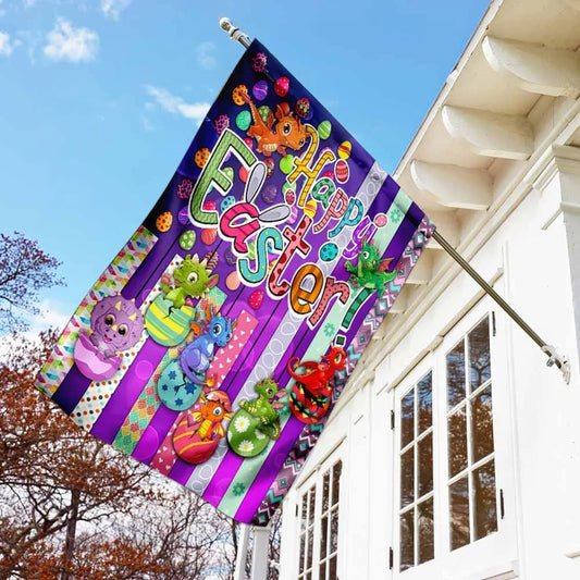 Dragon Eggs 1 Happy Easter Flag - Easter House Flags - Christian Easter Garden Flags