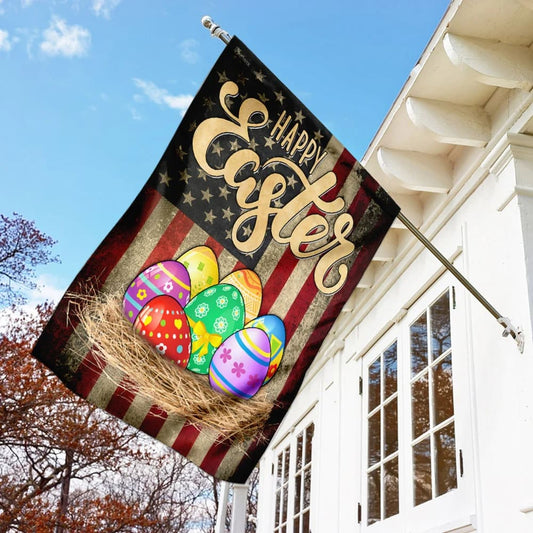 Easter Eggs American Flag - Easter House Flags - Christian Easter Garden Flags
