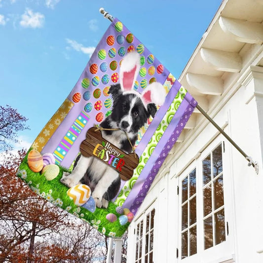 Puppy Border Collie 1 Happy Easter American House Flag - Easter Garden Flag - Easter Outdoor Decor