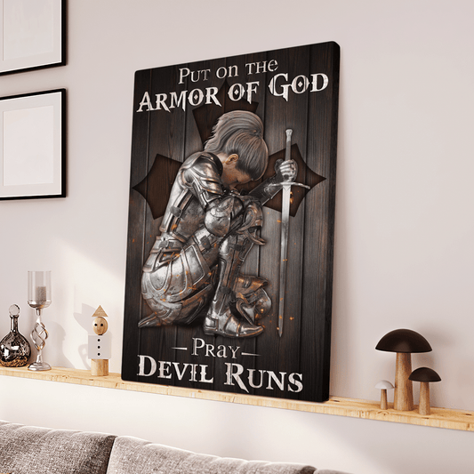 Put On The Armor Of God Pray Devil Runs, Warrior, God Canvas, Christian Wall Art - Ciaocustom