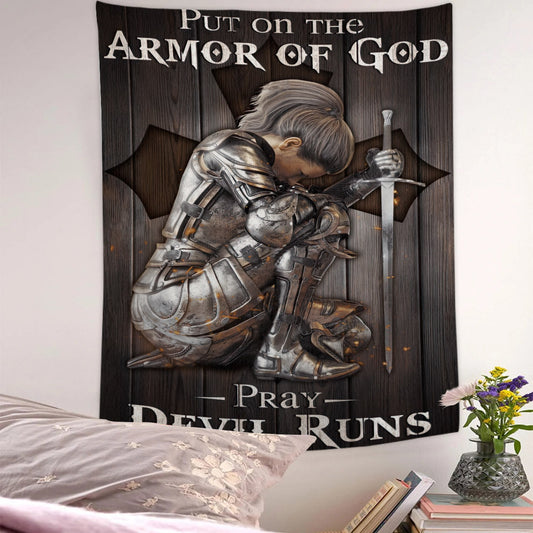 Put On The Armor Of God Tapestry - Warrior of God - Christian Tapestry - Jesus Wall Tapestry - Religious Tapestry - Bible Verse Tapestry - Ciaocustom