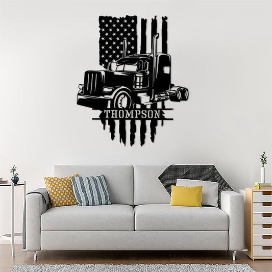 Personalized Truck Driver And American Flag Metal Sign - Custom Trucker Wall Art For Home Decor - Father's Day Gift