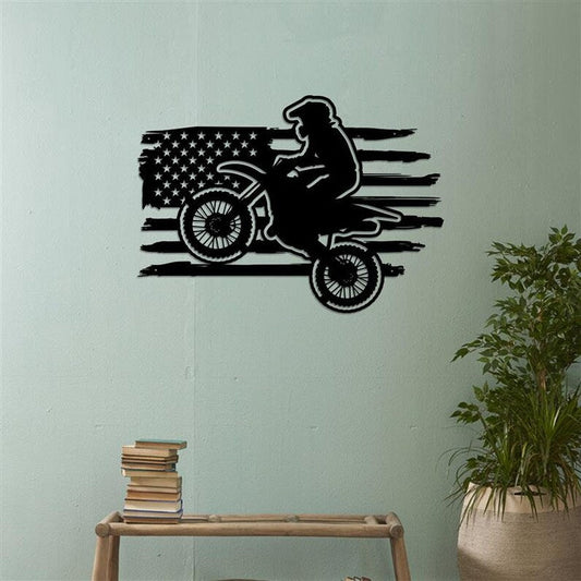 Personalized Metal Motorcycle Motocross With USA Flag Sign for Garage Home Decor - Father's Day Gift - Motorcycle Lover Gift