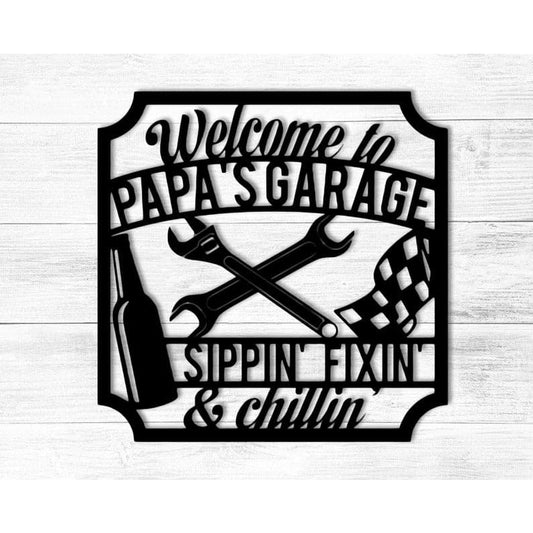 Personalized Papa's Workshop Cut Metal Sign - Fathers Day Gift - Dad Workshop Sign - Custom Metal Sign For Daddy