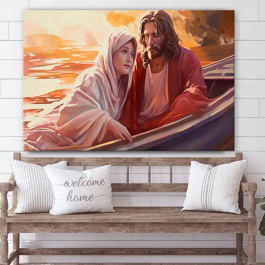 Jesus And Woman In Boat 3 - Canvas Pictures - Jesus Christ Canvas - Christian Wall Art