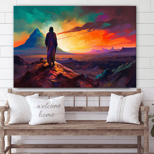 Jesus In The Desert With A Mountain - Canvas Picture - Jesus Christ Canvas - Christian Wall Art