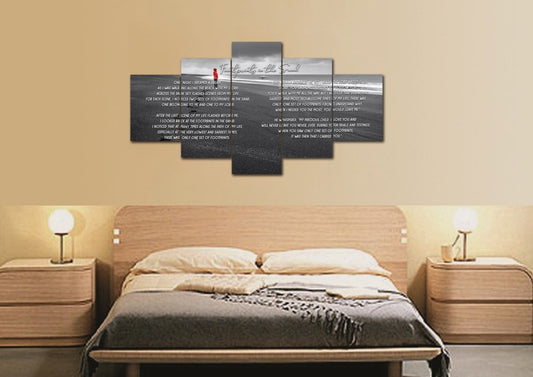 Red Jacket Footprints In The Sand Wall Art & Decor - Christian Canvas Wall Art