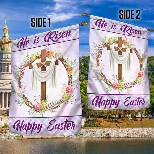 Easter Flag He Is Risen Cross - Easter House Flags - Christian Outdoor Easter Flags