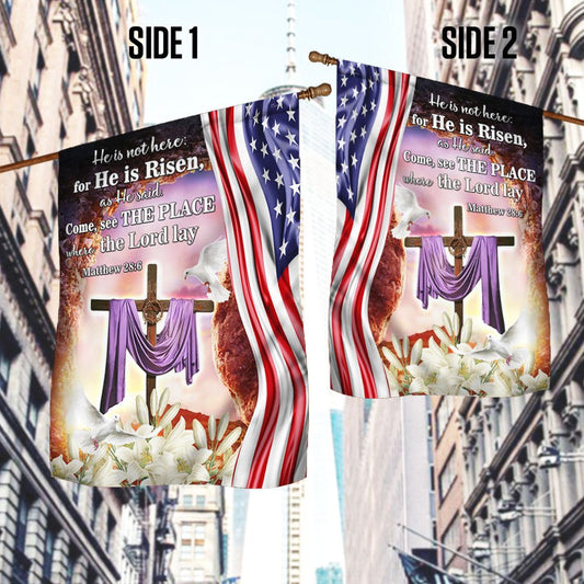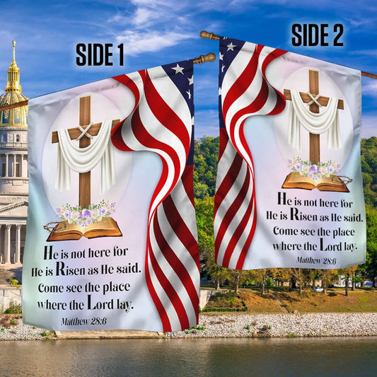 Jesus Cross Easter Day American Flag He Is Not Here He Is Risen - Easter House Flags - Christian Outdoor Easter Flags