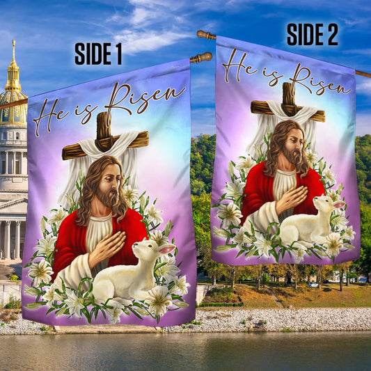 Easter Jesus He Is Risen American Flag - Easter House Flags - Christian Outdoor Easter Flags