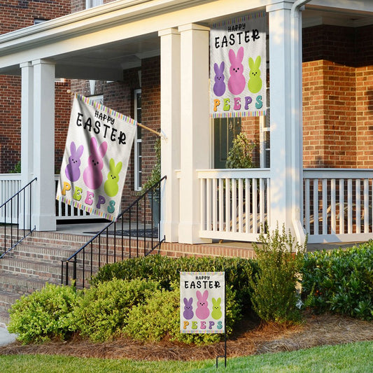 Happy Easter Bunny Peeps Flag - Easter House Flags - Christian Outdoor Easter Flags