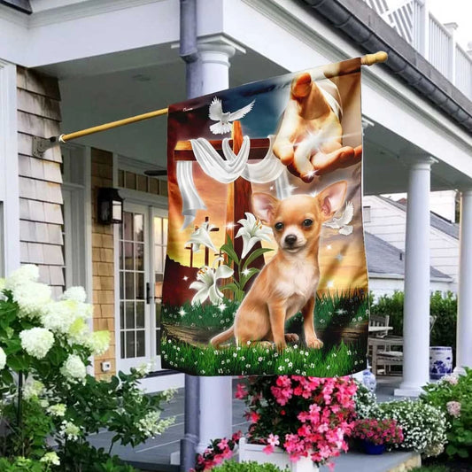 Jesus Is My Savior Chihuahua Is My Therapy Dog And Jesus Chihuahua House Flag - Christian Garden Flags - Christian Flag - Religious Flags